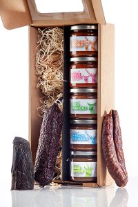 Meine 5 Wildspezialitäten im Glas, 1 Paar Hirschwürstel geräuchert, “Die Schwarze Taurer”, ca. 320g (Gamswurst geräuchert und gebraten), ein Hirschhenkele 170g Vorteilspreis: Euro 65,00